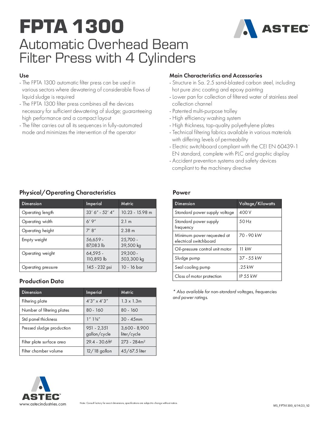 FPTA 1300 Automatic Overhead Beam Spec Sheet English