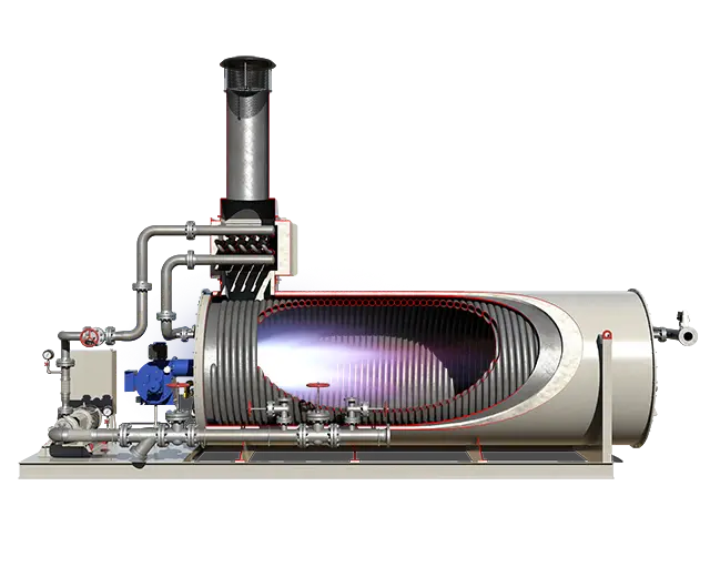 Thermal fluid heaters typically fire through a helical coil or a serpentine coil. Energy from the flame heats the coil by radiation and convection. The hot coil heats thermal fluid pumped through it. The thermal fluid heats coils in heat exchangers. Unlike a boiler, the heating process does not pressurize the heater’s shell, the coil, or the piping.