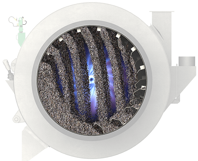 4″ thick insulation under the outer skin of the mixing chamber minimizes heat loss and increases efficiency. In addition, temperature-resistant ceramic fiber insulation is used in critical high-heat areas.