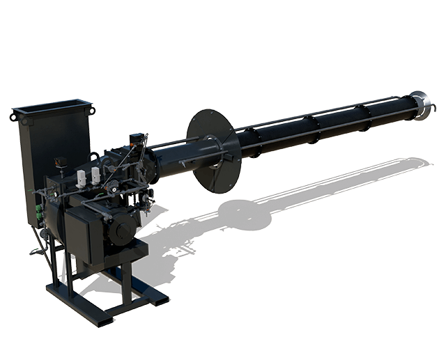 The pivoting drag conveyor and batcher attach to the frame during transport. Heavy-duty steel drag components increase reliability. The drag bottom can be unbolted and replaced lowering maintenance costs.