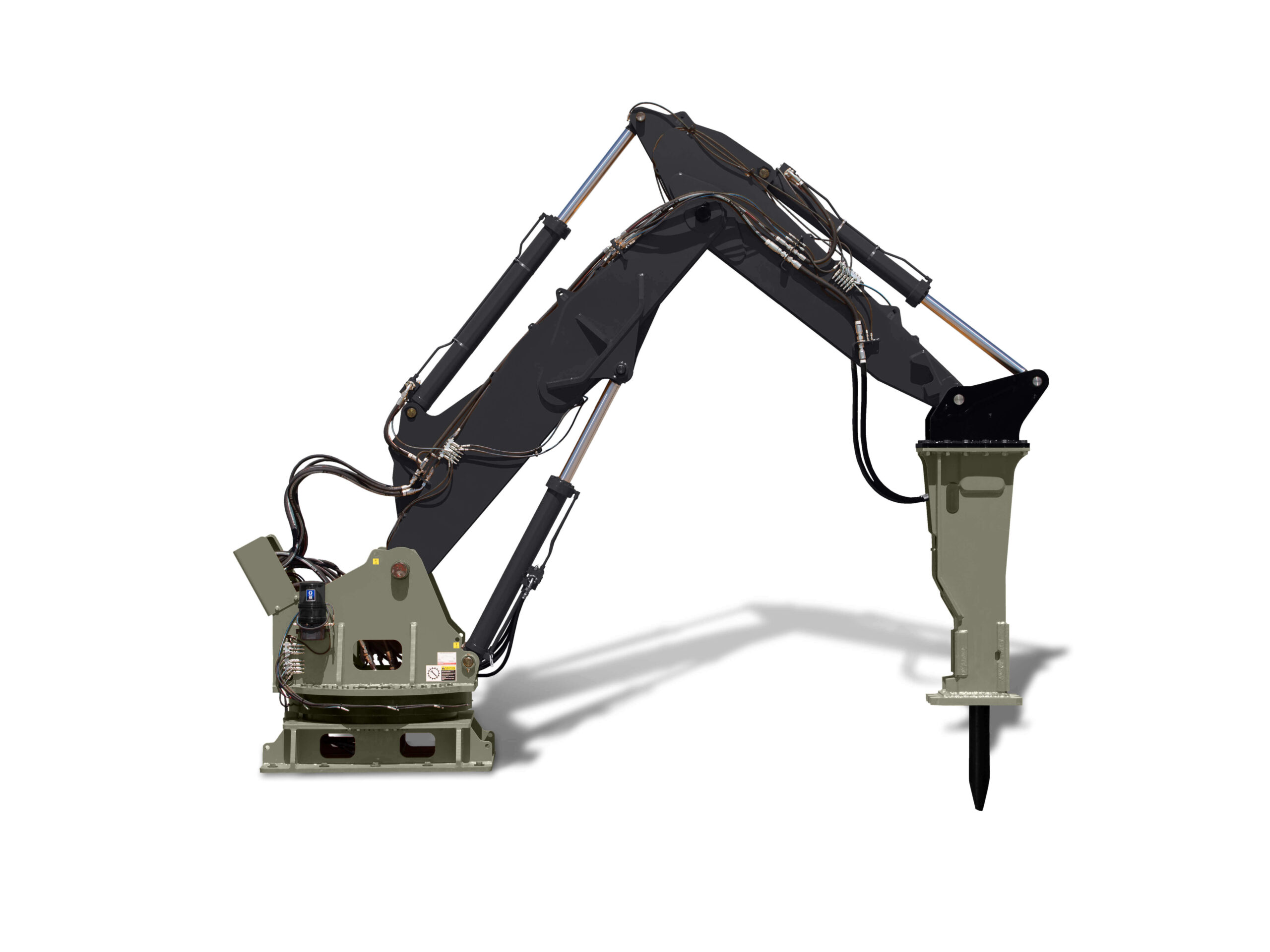 - Induction-hardened chrome cylinder rods resist damage from fly rock