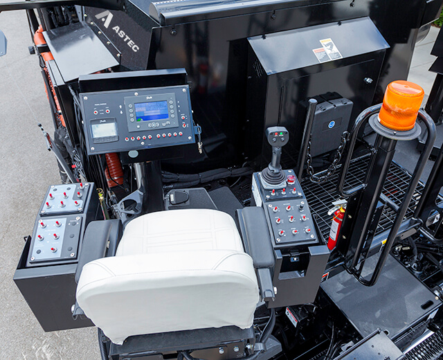 Comfort drive station with armrest controls and swing out seats enable simple and efficient operation.