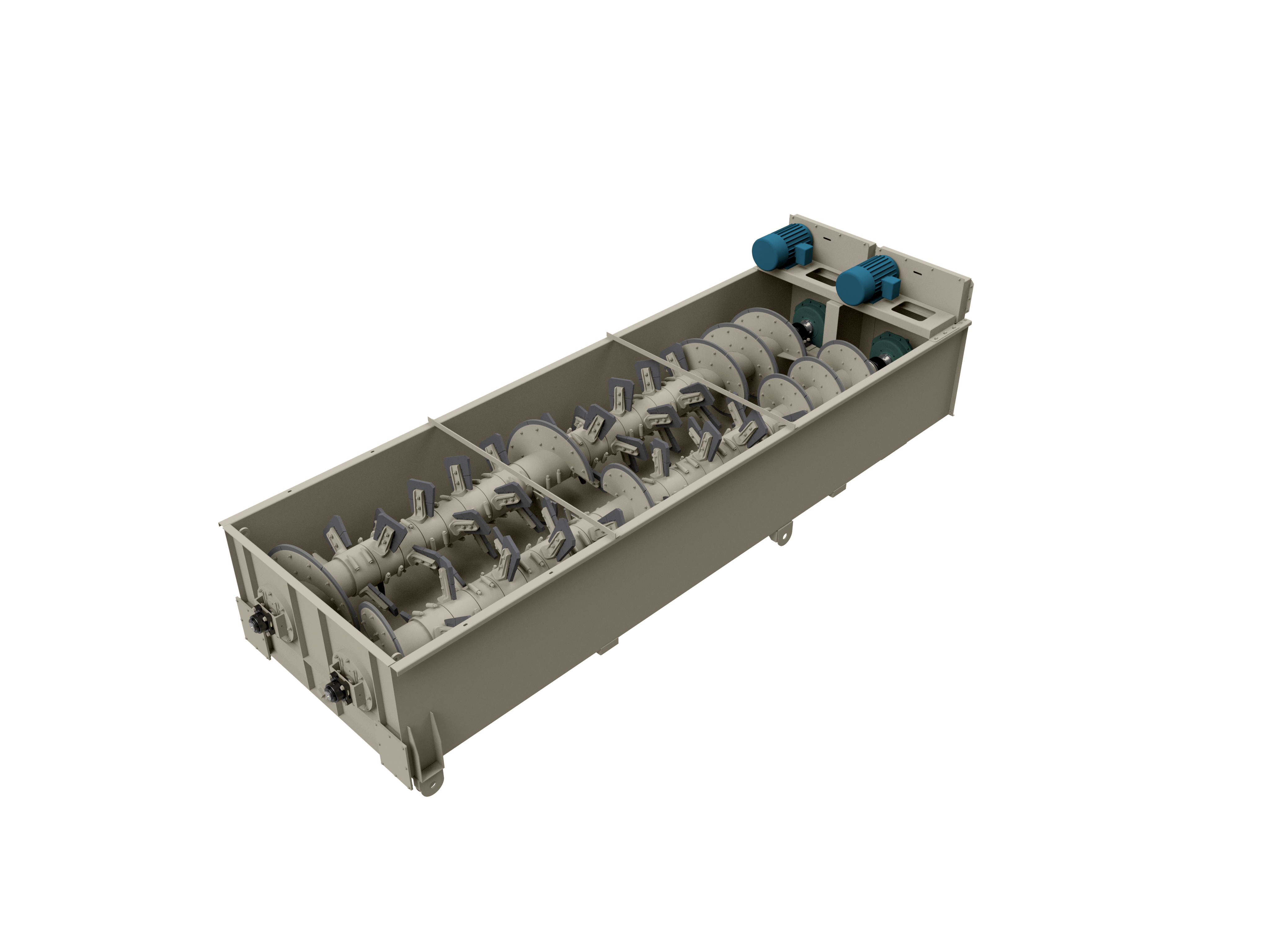 The innovative double-pitch flights and ribbed-paddle design efficiently convey material through the blademill to break up sticky clay and muddy clumps with extraordinary effectiveness. Almost all of the bolt-on ni-hard paddles and spiral flights are adjustable to best match your aggregate production needs.
