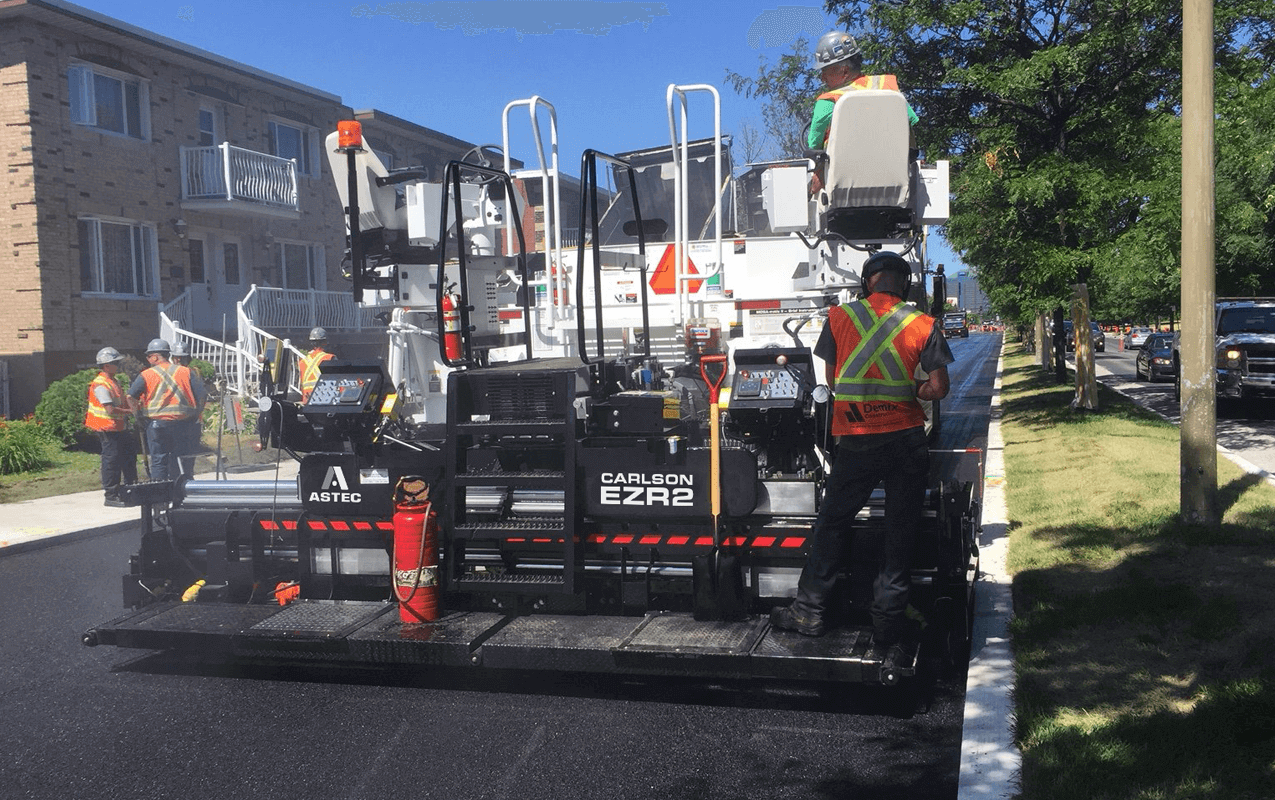 The EZR2 features a low-profile design for clear line of sight to the paver’s augers and head of material, telescoping walkways for enhanced safety, and the most crew comfort features among rear-mount screeds including cup holders, depth rods, and exclusive Carlson oven.