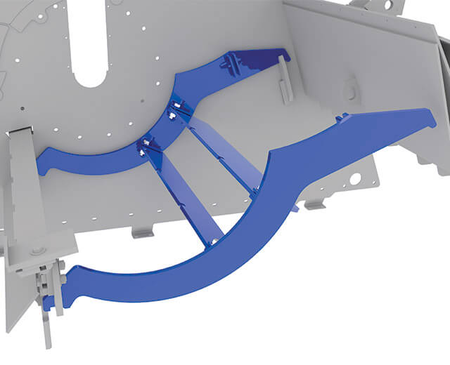 The R+ package uses a specially designed rotor with high and low bits, that turns at half the speed of our standard units. This processes material through a specialized heavy duty grate, with the high and low bits passing through the fingers, providing extensive fracturing surfaces for superior product reduction.